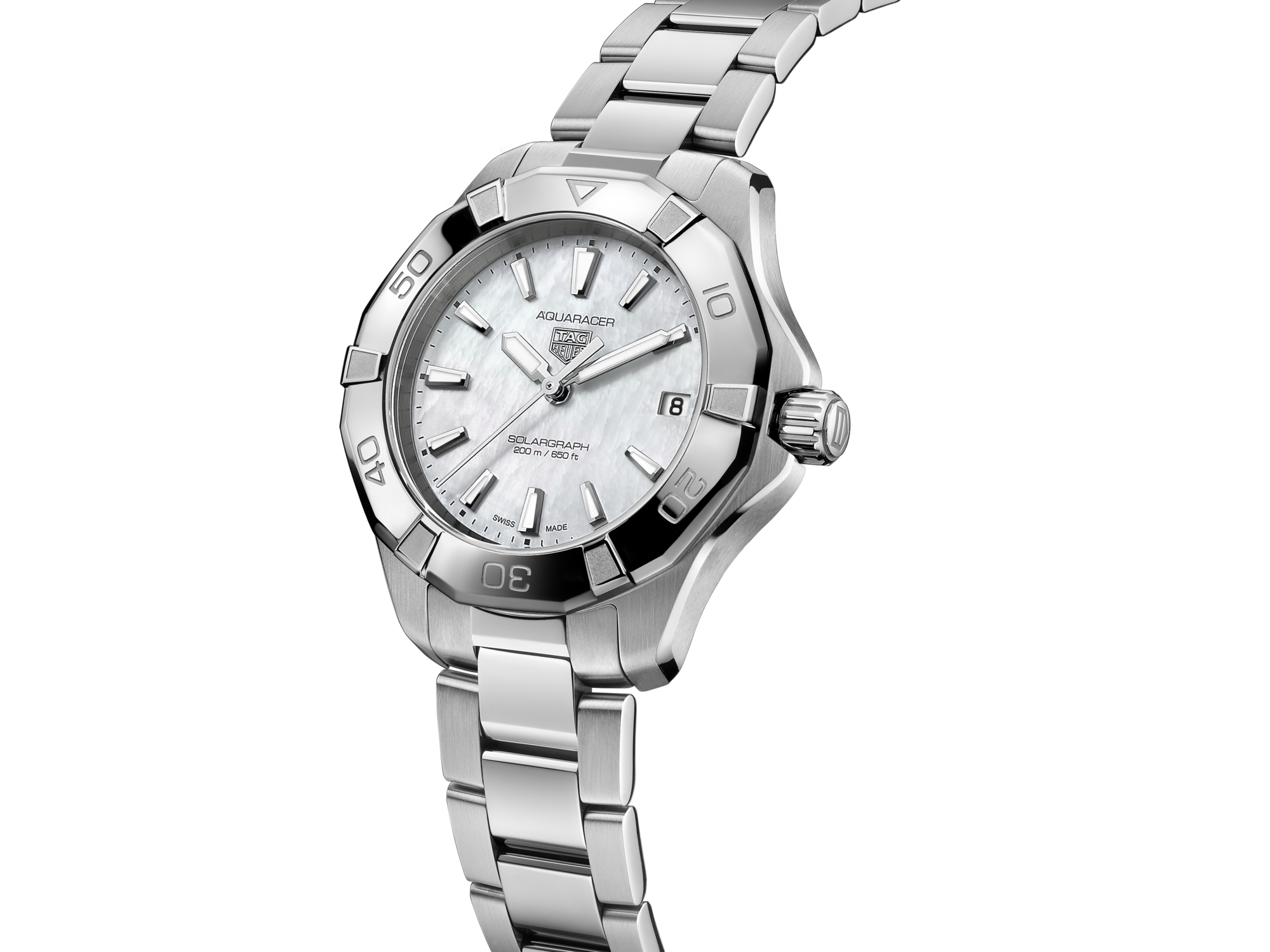 Solar Quartz, 34 mm, Steel WBP1312.BA0005Immerse yourself in the celestial allure of the northern lights with this TAG Heuer Aquaracer, equipped with our Solargraph movement. Designed as an elegant yet resilient timepiece for the modern explorer, this sumptuous 34 mm watch is your go-to companion for rugged adventures and urban sophistication.