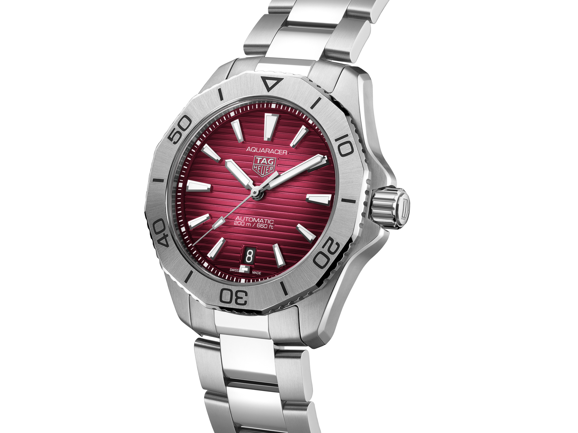 Automatic, 40 mm, Steel WBP2114.BA0627As versatile as it is elegant, this TAG Heuer Aquaracer comes packed with adrenaline. Combining a showy ruby-red dial conveying the vivid colours of autumn with a functional 40mm steel case and bracelet, it is made to go further, with the utmost style.