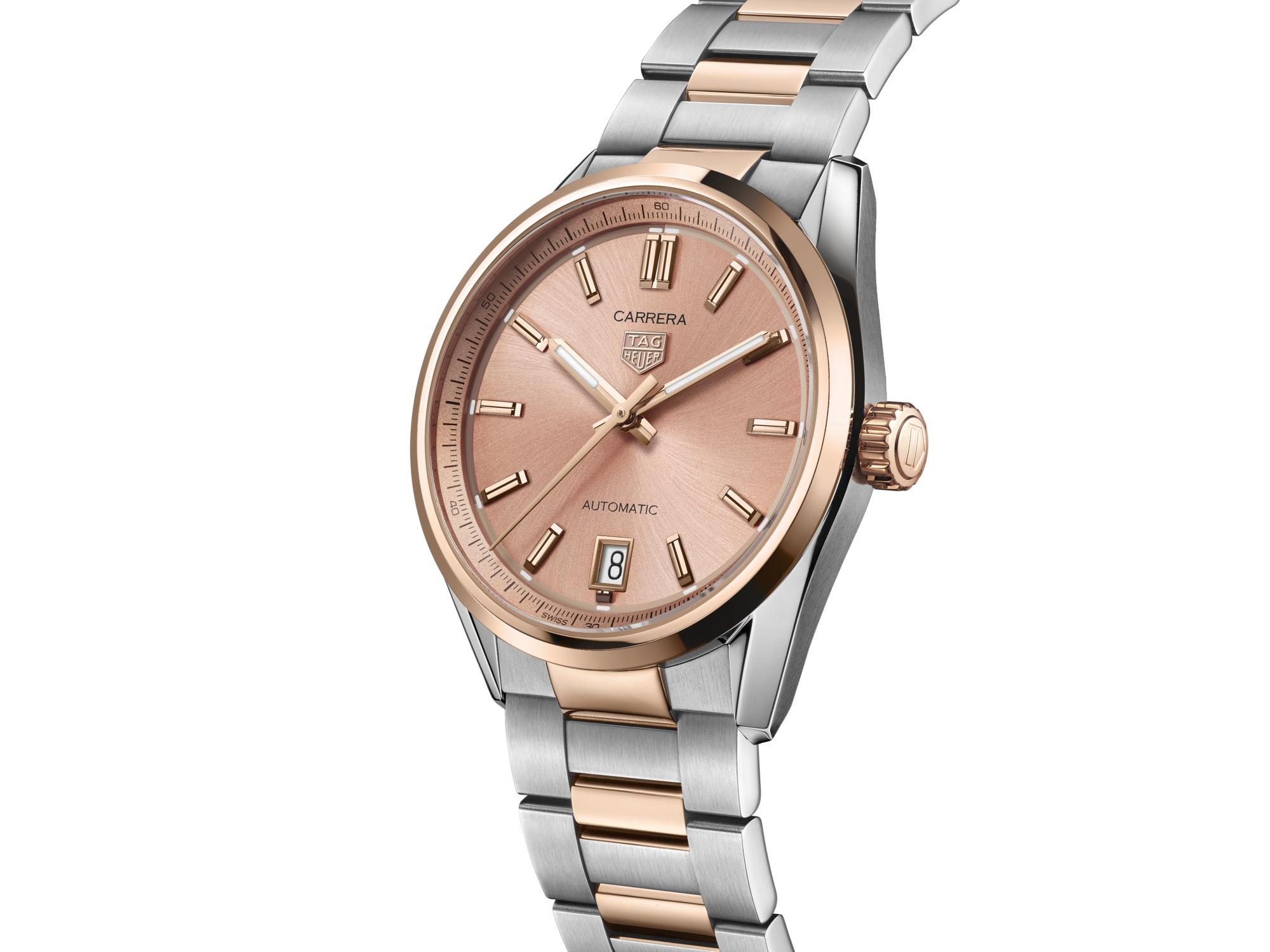 Automatic, 36 mm, Steel WBN2350.BD0000Encapsulating the essence of sophistication, this luxurious 36mm TAG Heuer Carrera Date distills the subtle elegance of the copper-like tones of its snailed-brushed dial with a silhouette that echoes the collection's storied heritage of speed and luxury.