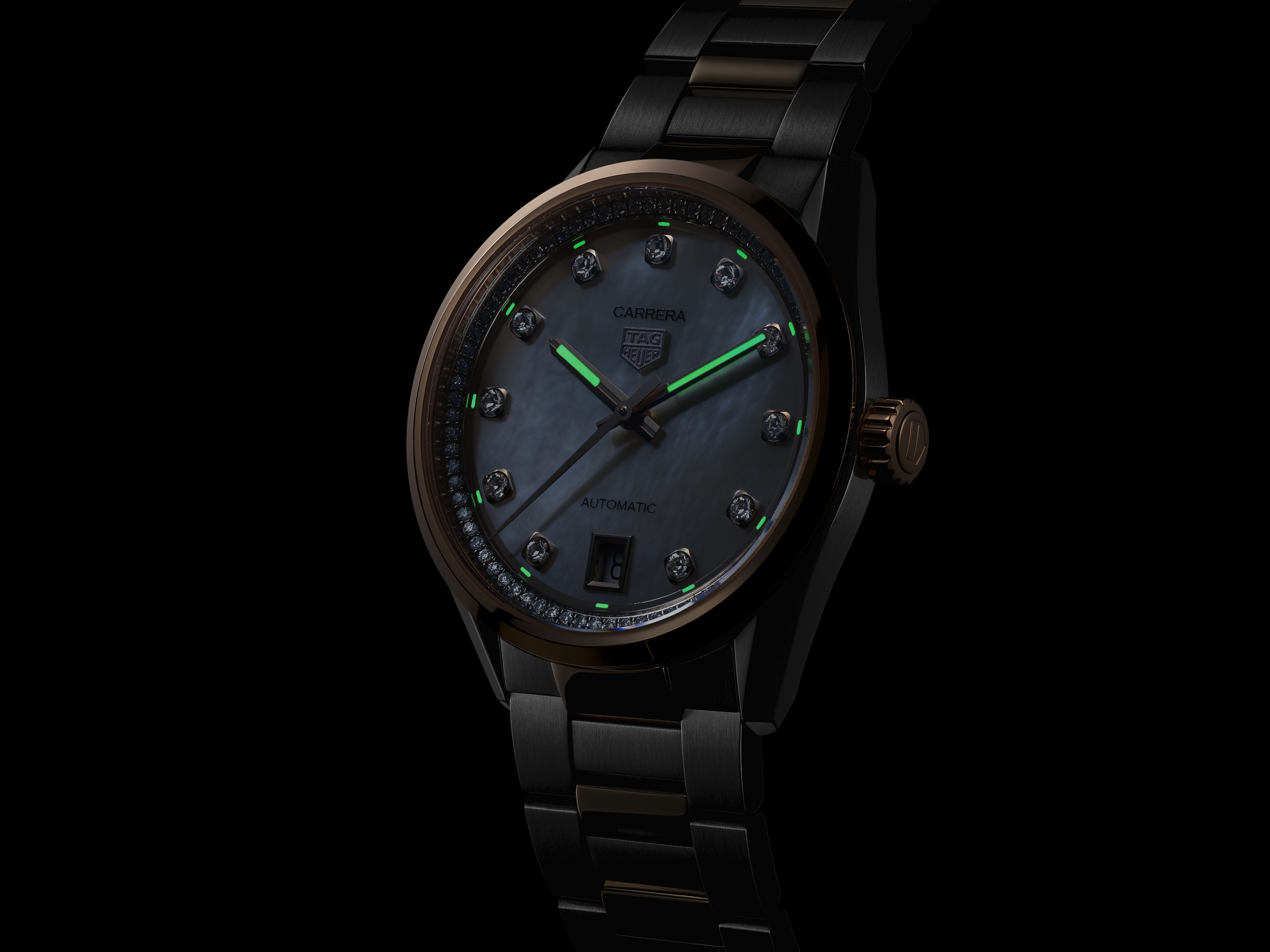Automatic, 36 mm, Steel WBN2351.BD0000Delve into refined elegance with this 36mm TAG Heuer Carrera Date, where the iridescence of mother-of-pearl echoes the timeless luxury of 18K 5N solid rose gold—a tribute to the original Carrera's legacy, reimagined with classic sophistication.