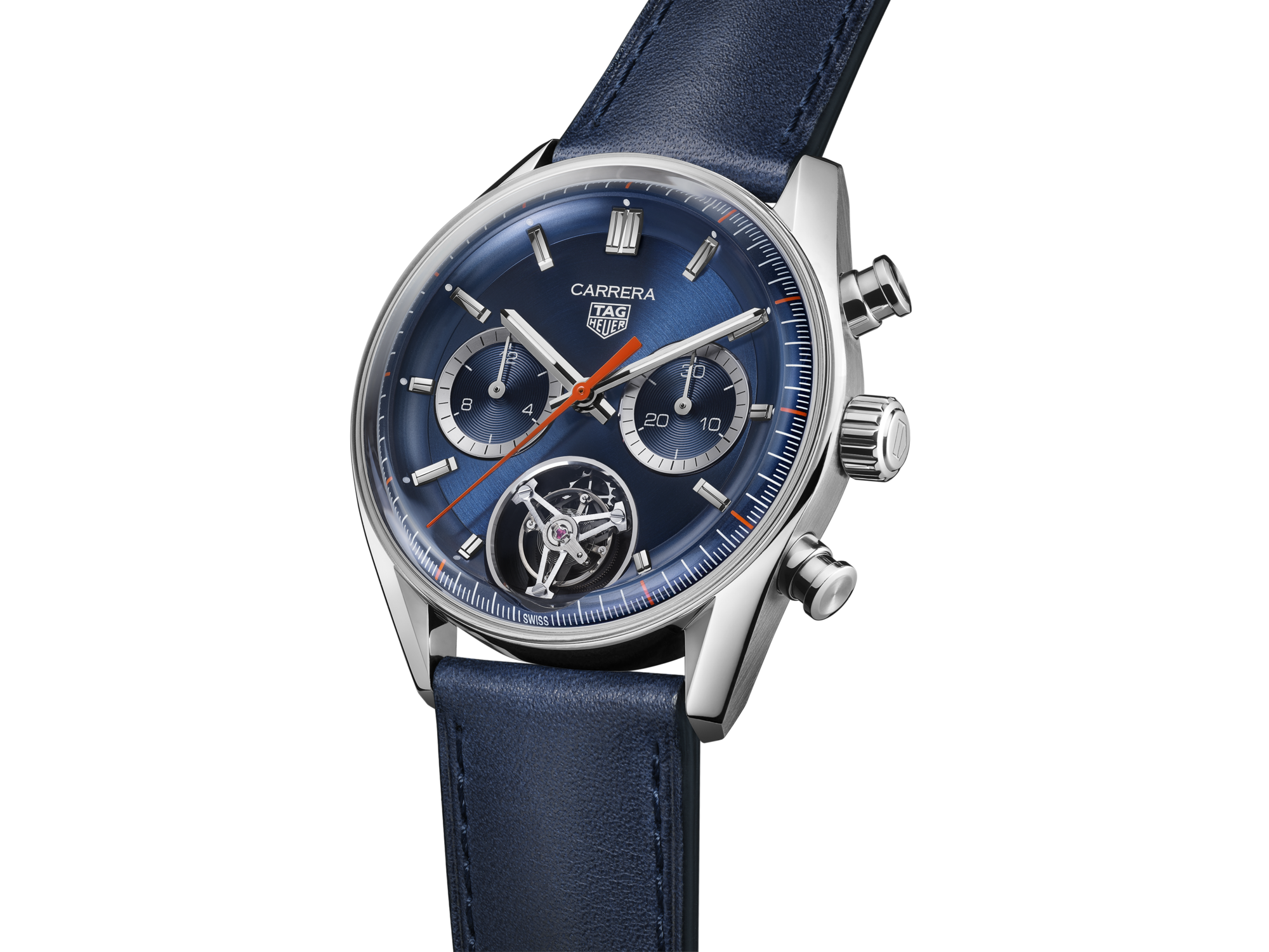 Automatic, 42 mm, Steel CBS5010.FC654360 years on and still prodigious. This distinctive 42mm version of the TAG Heuer glass box celebrates the Carrera’s 60th anniversary with great aplomb. Showing an intense-blue dial with orange highlights and showcasing our in-house tourbillon movement, the Calibre TH20-09 automatic COSC.