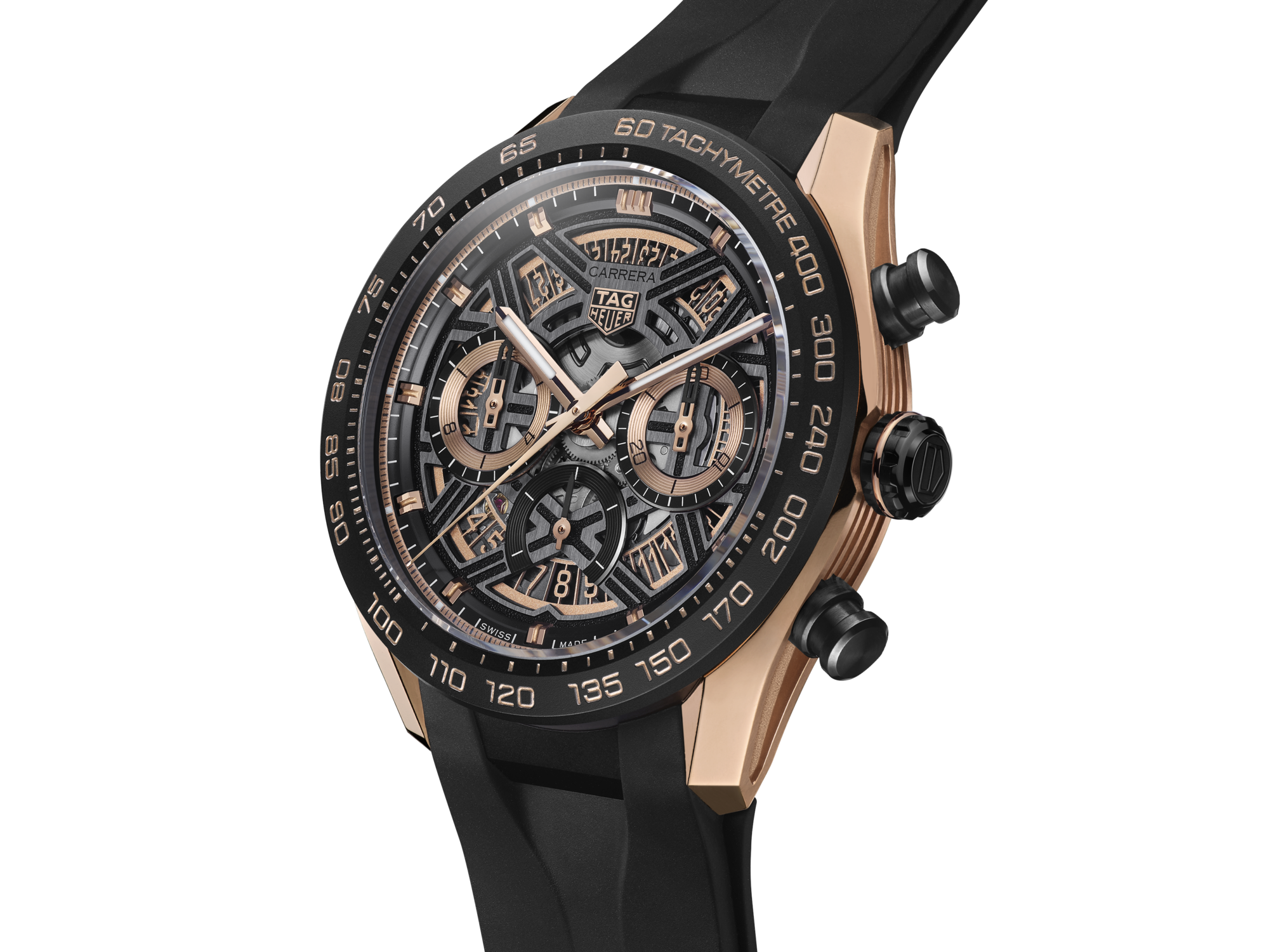 Automatic, 44 mm, Gold & Titanium CBU2050.FT6273Audacity meets elegance in this one-of-a-kind TAG Heuer Carrera Chronograph. With its skeleton design and rose gold accents, this exhilarating chronograph embodies the spirit of motorsport and luxury combined—a timepiece for those who dare to stand out.