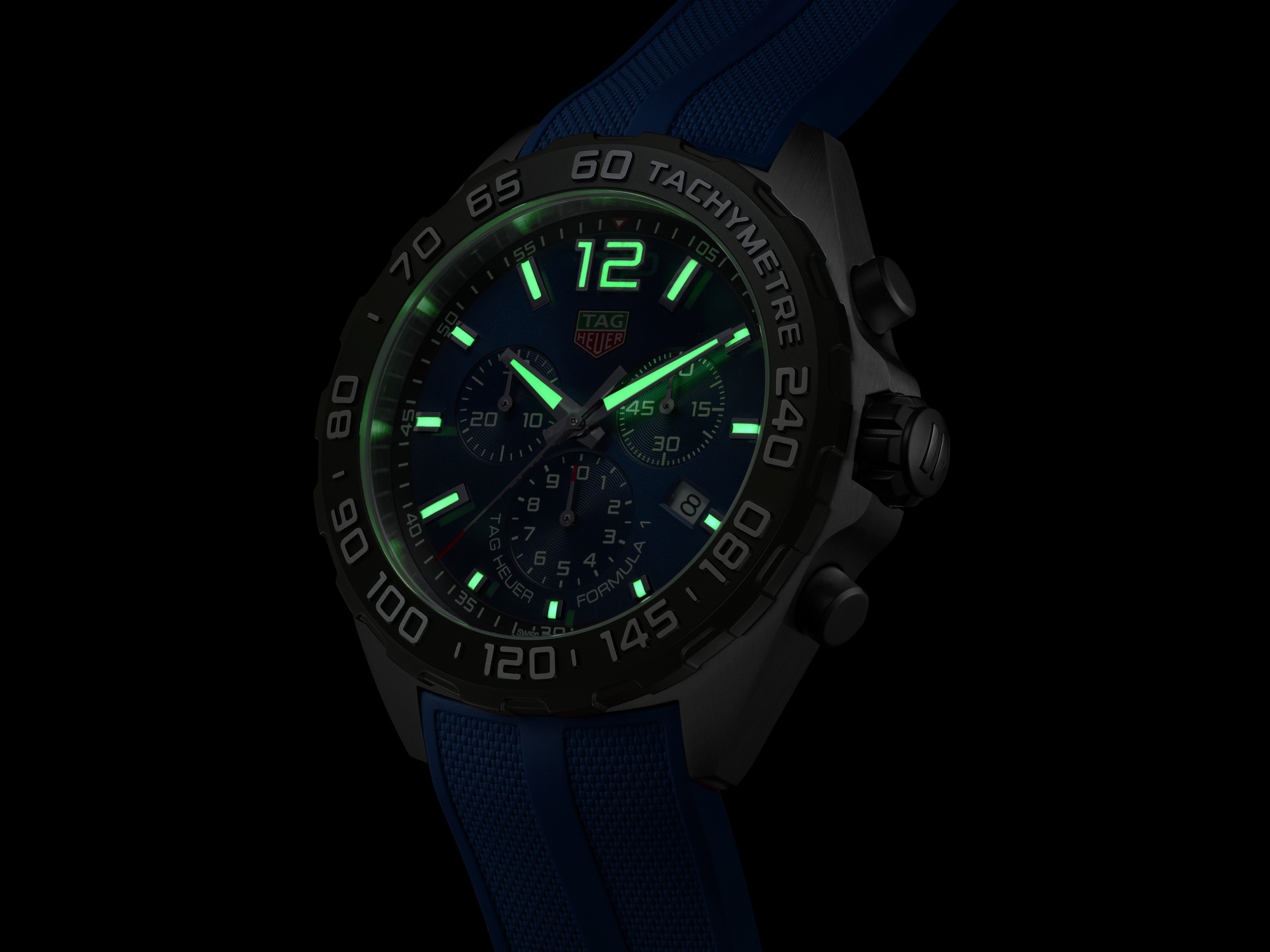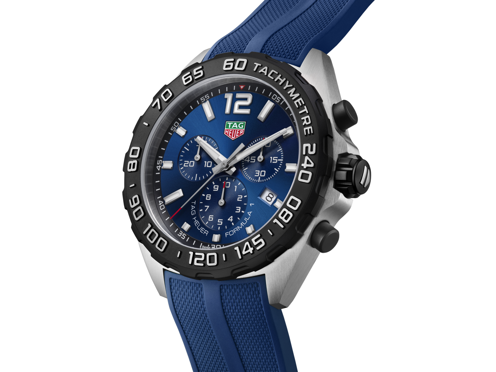 Quartz, 43 mm, Steel CAZ101AV.FT8077Experience the epitome of sporty elegance with this TAG Heuer Formula 1 timepiece. Showcasing a vibrant blue dial and equipped with a versatile blue rubber strap, this 43 mm watch lends a modern edge to a racing legend.