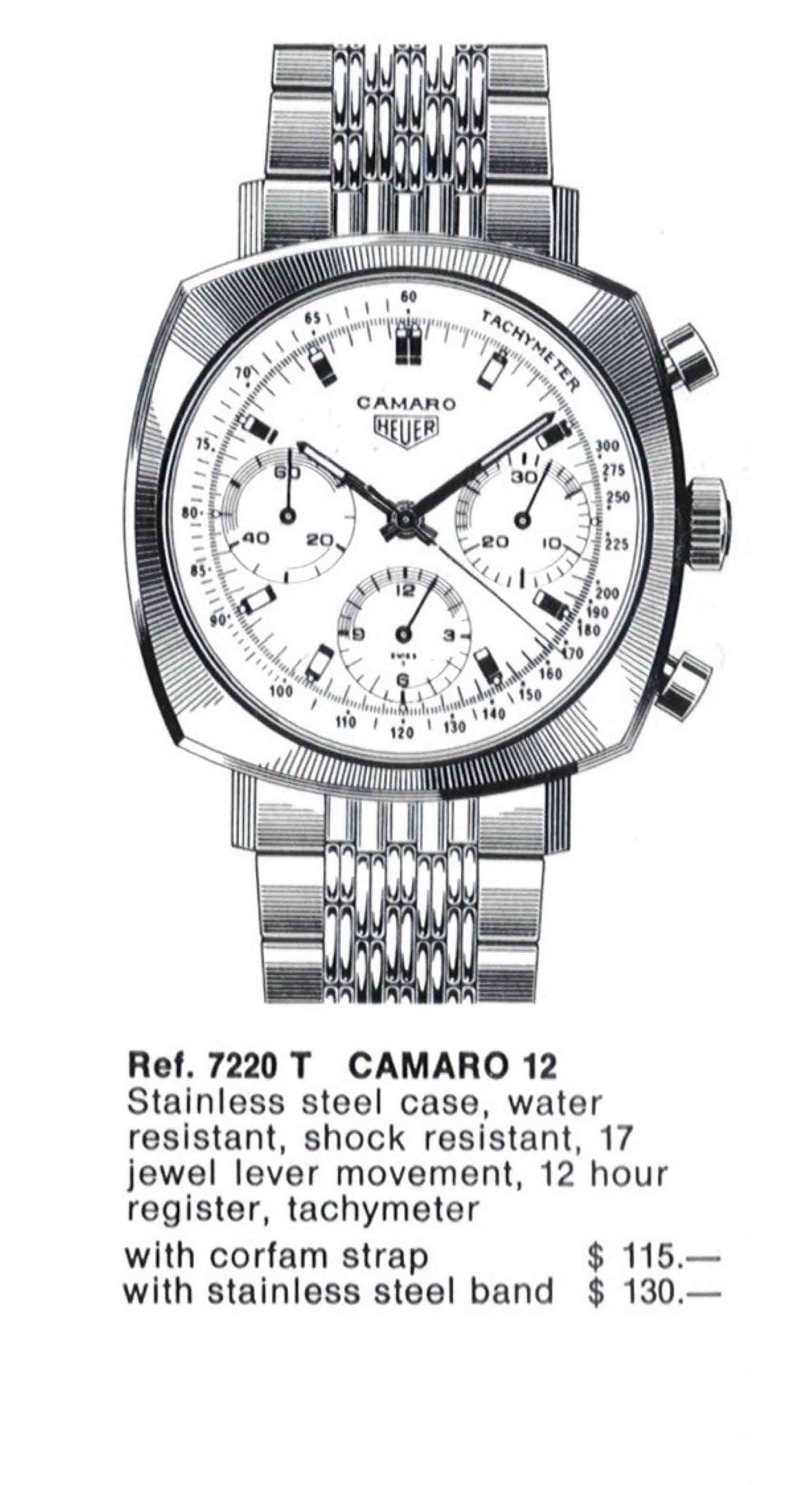 - Camaro 7220,搭载Valjoux 72机芯 – 早期精钢表壳