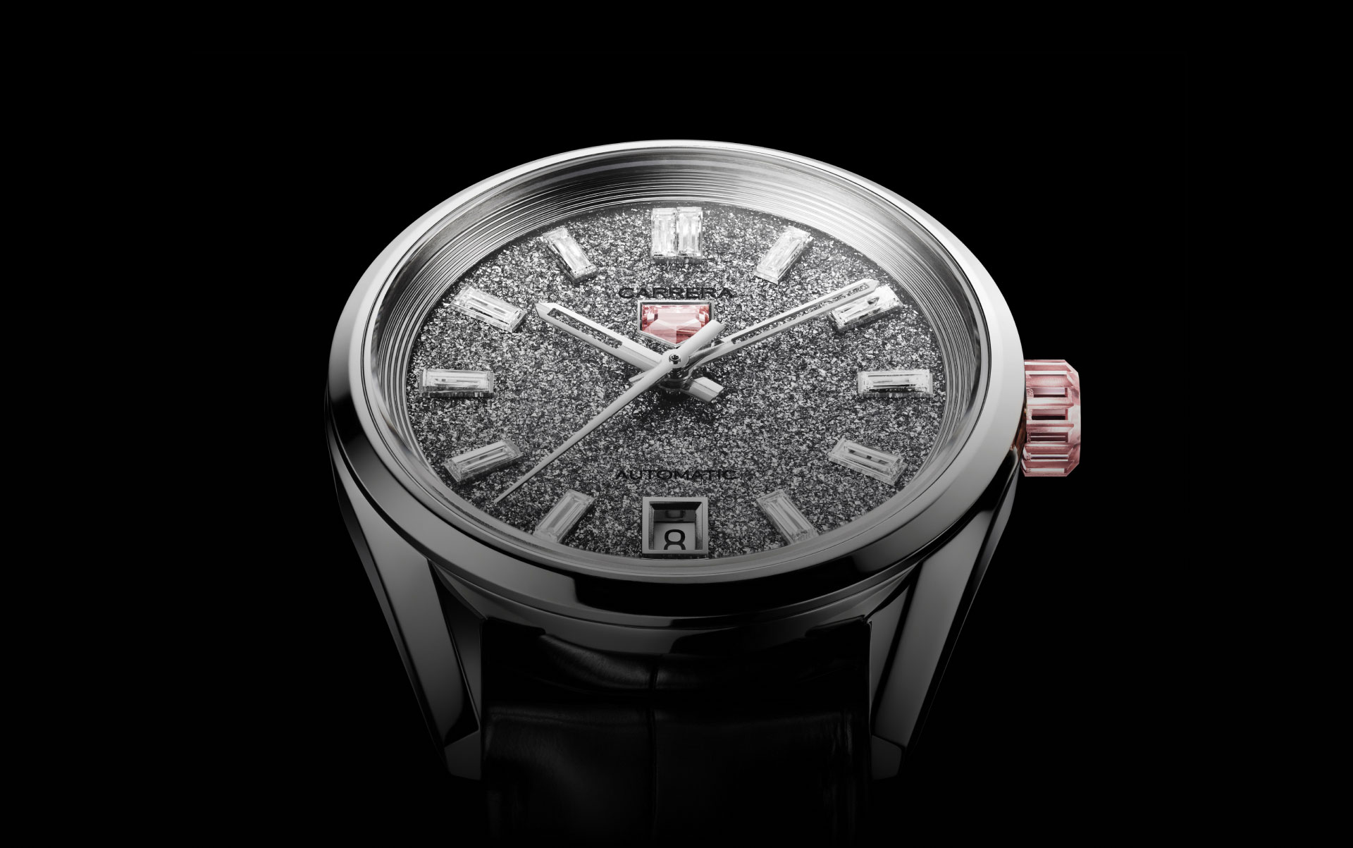 Experience a visual spectacle with the timepiece’s striking polycrystalline dial. A masterpiece of diamond crystals grown in unison, it creates an enchanting play of light and reflections, setting a new standard in watchmaking aesthetics.