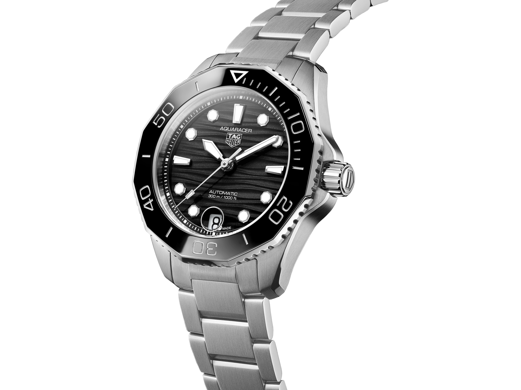 Automatic, 36 mm, Steel WBP231D.BA0626A professionnal tool for the deeps. Powered by the automatic Calibre 5 movement, the TAG Heuer Aquaracer features a black dial with wavy finishing. Its new slim case with tapered bracelet and adjustable clasp makes it fit for any achievement.