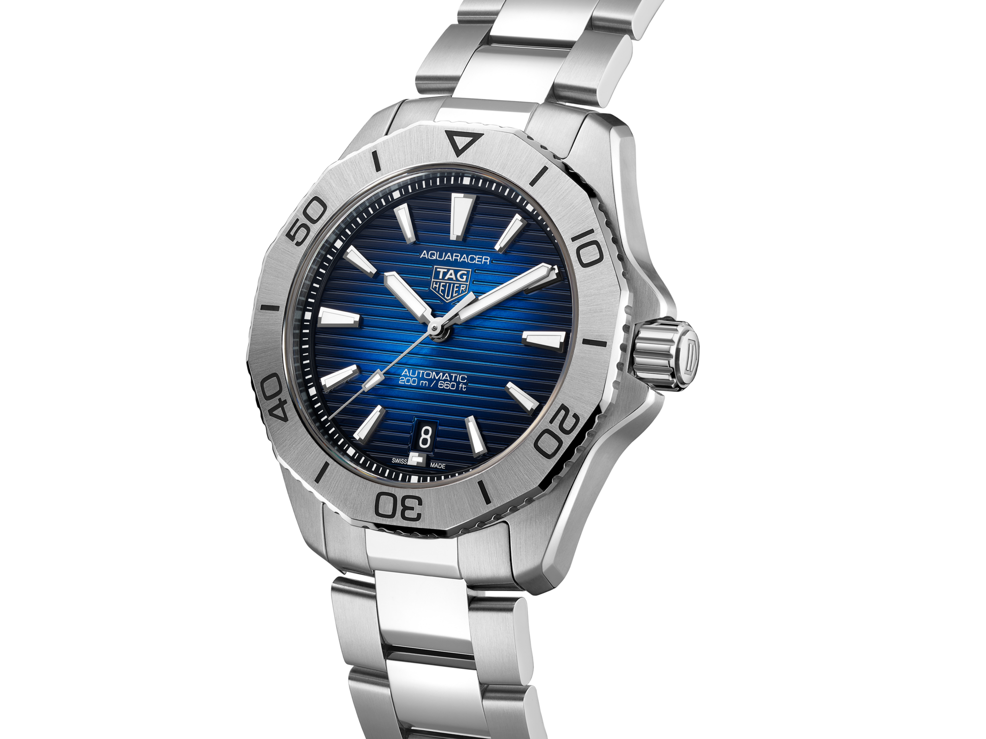 Boasting a refined bezel and a highly ergonomic 40mm steel case, this elegant and versatile TAG Heuer Aquaracer raises the bar.