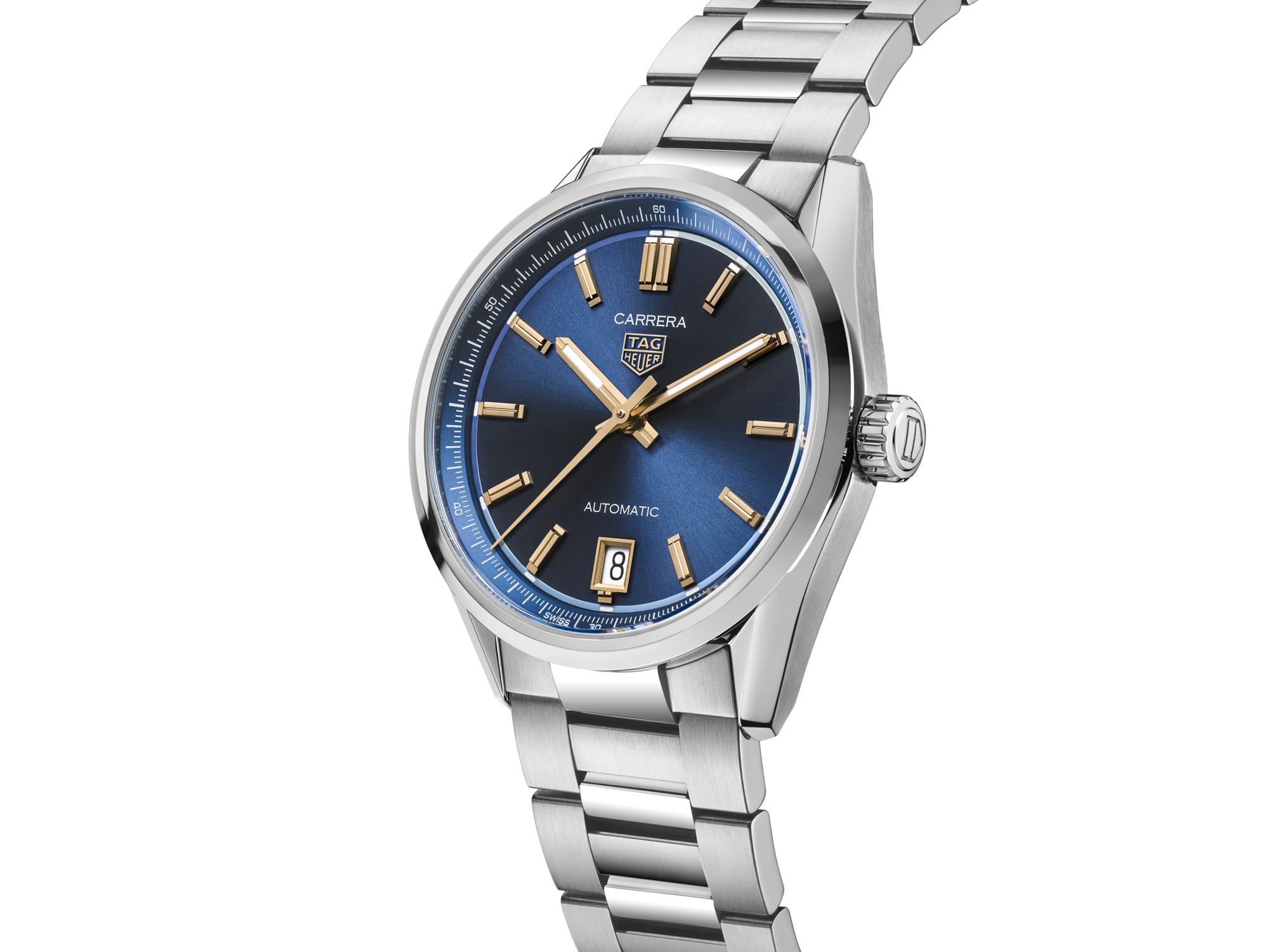 Automatic, 36 mm, Steel WBN2311.BA0001With its striking deep-blue sunray brushed dial and contrasting 18K 5N rose gold-plated applied hands and indexes, this TAG Heuer Carrera proudly displays its iconic allure. Equipped with the Calibre 7 movement and resolutely driven to surpass.
