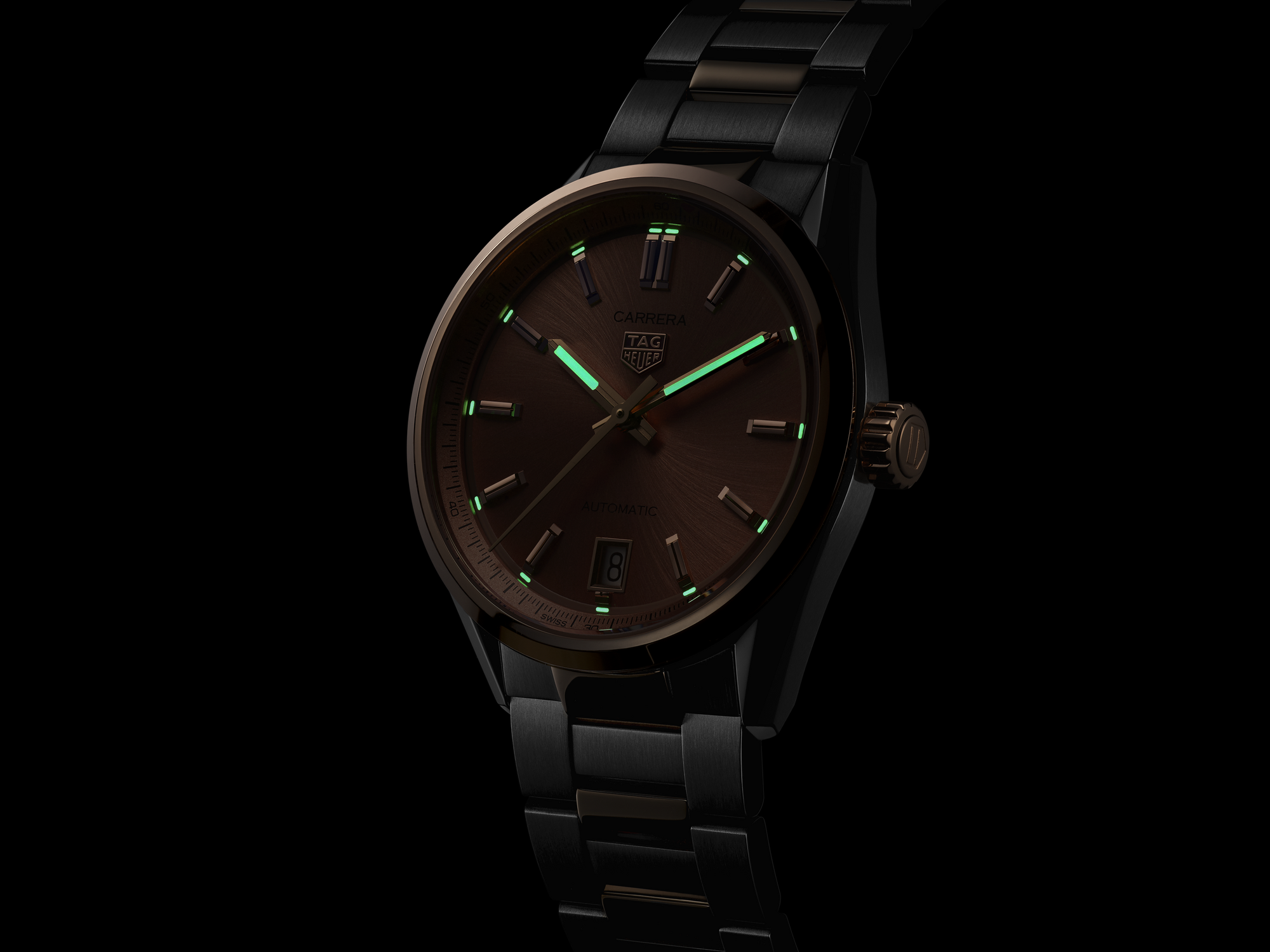 The Calibre 7 Automatic movement pulses at the core, driving this prestigious Carrera with unrivaled precision and a 56-hour power reserve.
